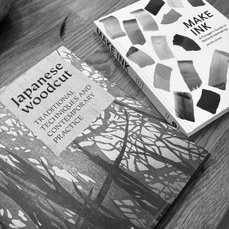 I am following a recipe for silvery acorn cap ink from the book Make Ink by Jason Logan, but I also came across some interesting natural ink suggestions in Japanese Woodcut by Carol White Justin, which recommended mixing the ink with nori paste to achieve the right consistency for printmaking. This was particularly interesting as I had envisioned using the ink for Japanese woodblock printing (Mokuhanga).